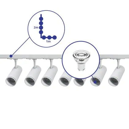 | Manufacturer Name | Complete L shaped 1-Phase Track Set White incl. 7x Spot fixture + GU10 2700K 3W Dim – 1 x 2 meters i | |