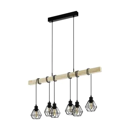 Eglo Pendant Townshend 5 Steel Wood Black | IP20 - Suitable for 6x E27