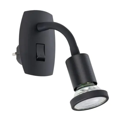 Eglo Wall Light Parrini Lamp with Plug Black 4.5W 345lm - 830 Warm White | IP20 - Incl. 1x GU10
