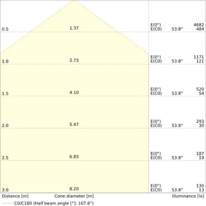 ![]() The colour code is a combination of colour rendering (CRI) and light colour (Kelvin). The first number indicates the colour rendering (1 = very poor colour rendering, 9 = maximum colour fastness). The second and third number contains the light colour. Example: the colour code 830 consists of good colour rendering (8) and warm white light (3000K). |