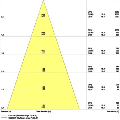 ![]() The colour code is a combination of colour rendering (CRI) and light colour (Kelvin). The first number indicates the colour rendering (1 = very poor colour rendering, 9 = maximum colour fastness). The second and third number contains the light colour. Example: the colour code 830 consists of good colour rendering (8) and warm white light (3000K). |
