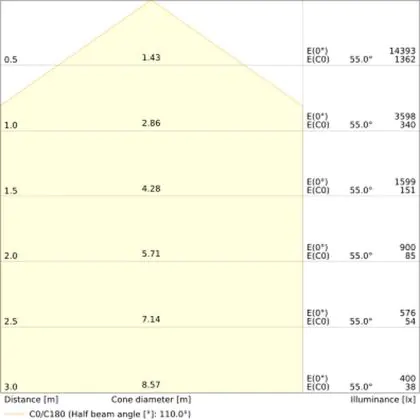A beam angle indicates the angle of the light beam coming from a light source. The smaller the radiation angle in degrees (D), the narrower the beam angle.
