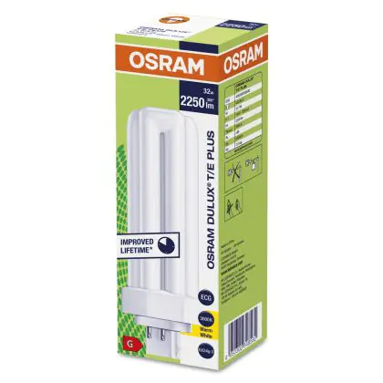 Also, the Osram DULUX T/E 32W/830 PLUS GX24q-3 Lumilux Warm Whitelifespan is very long, up to 13000 hours. These lamps are also very energy efficient, they have an energy label classified A.