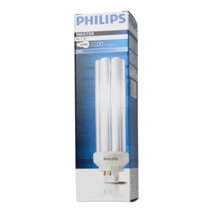 With a colour temperature of 4000K, Philips PL-T 42W 840 4P will provide a cold white light. Philips PL-T 42W 840 4P are very energy efficient, their energy label is classified A. These lamps offer the advantage of having a very long lifespan, 13000 hours on average.