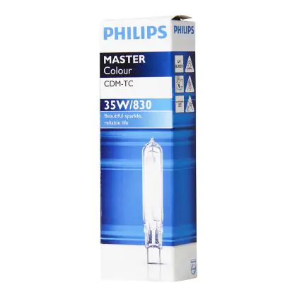 CDM-TC is a compact high pressure ceramic burner discharge lamp with a bright light and a very stable luminous flux. With their G8.5 base, Philips CDM-TC 35W 830 G8.5 can be easily integrated into luminaires, and allow you to replace your old inefficient halogen lamps. The Philips CDM-TC 35W 830 G8.5 have a life span of 15000 hours; which is much longer than standard lamps.